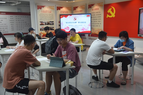 5月30日晚在翡翠科教楼A座11楼开展“我为师生办实事”座谈会。座谈采用匿名收集方式进行,44名同学参与了本次座谈。收集了关于学业方面、学校生活、社团活动、第二课堂等方面的建议,共计13个方面的283条建议。