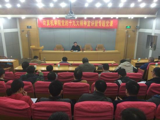 党委在校学术会议中心小报告厅举办了党的十九大精神宣讲暨专题党课报告会。院党委书记祖权作了“深入领会习近平新时代中国特色社会主义思想”专题报告,学院全体教工党员、研究生支部书记、研究生各班级干部、研究生会干部参加了报告会。