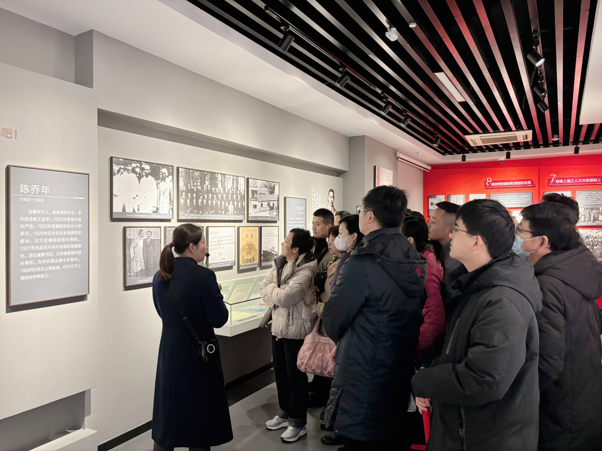 首先,全体人员在讲解员的解说下参观了陈独秀纪念馆,馆中文物、图片、视频、文字等丰富资料真实再现了陈独秀先生光辉且传奇的一生,也让大家深入了解了革命先辈的奋斗历史和共产党创立初期的艰辛与不易,更加坚定了自己的共产主义信仰。