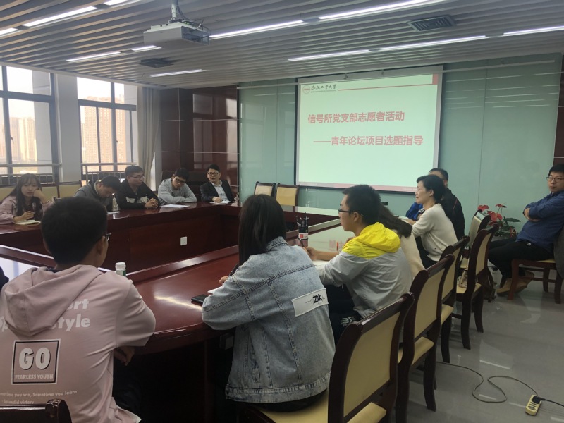 翡翠科教楼A1106会议室,信号与信息处理研究所党支部组织开展了一次针对19级新生的青年论坛选题指导会。会议由金兢老师主持,信号所党支部张海燕、齐美彬、夏娜、翟琰、王煜洁、周芳、张小辉、陈斌老师等一线教职工参加选题指导会。