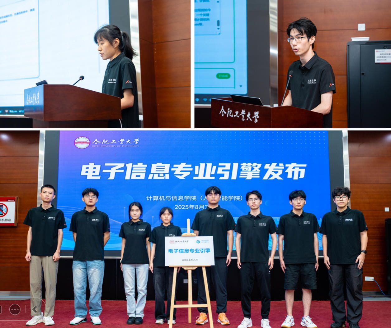 发布会上,首先播放了电子信息专业引擎的宣传短片;随后进行了该专业引擎的揭牌仪式;紧接着由学生团队代表吴文杰(快看漫画