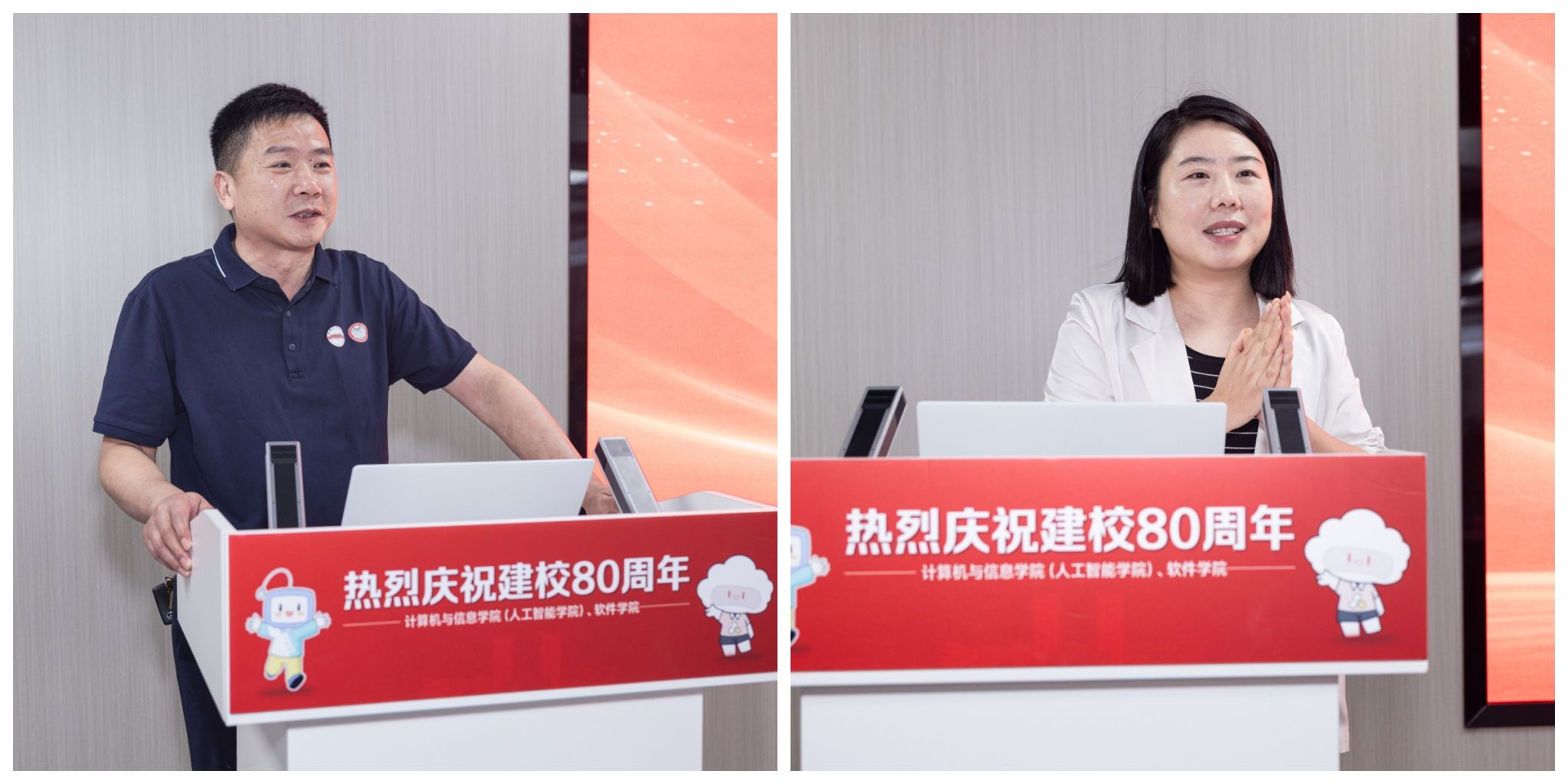 校友代表魏玉涛、沈浩依次上台,深情回忆在工大求学的青葱岁月,并分享了各自在职业发展、创新创业中的心得与感悟。他们表示,无论身在何处,母校永远是精神家园,愿为学院发展贡献智慧与力量。