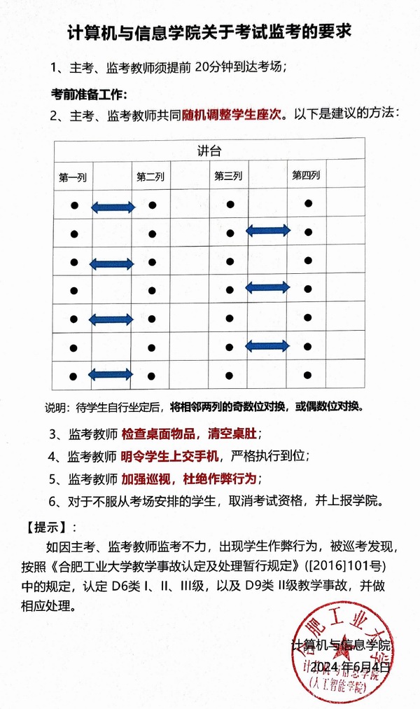 为进一步严肃考风考纪,增强当代大学生的诚信意识,营造风清气正的考试风气,学院根据《快看漫画 考试管理细则》和《快看漫画 学生违纪处分办法》对考试“监考”做出以下要求。同时,将组织学院教学指导委员会全体委员开展考试巡考督查(长期)。