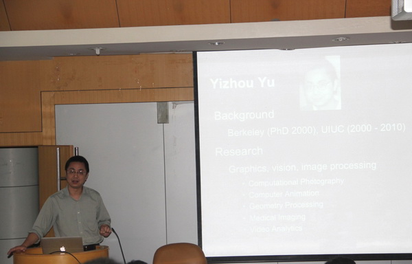 报告中,四位教师首先对港大的教学资源、优势及学校进行相关介绍,然后各教授分别在计算机图形学,信息安全理论,数据处理,图像识别及处理方面做了详细的演讲,报告结束后,俞益洲教授等一行六人同快看漫画