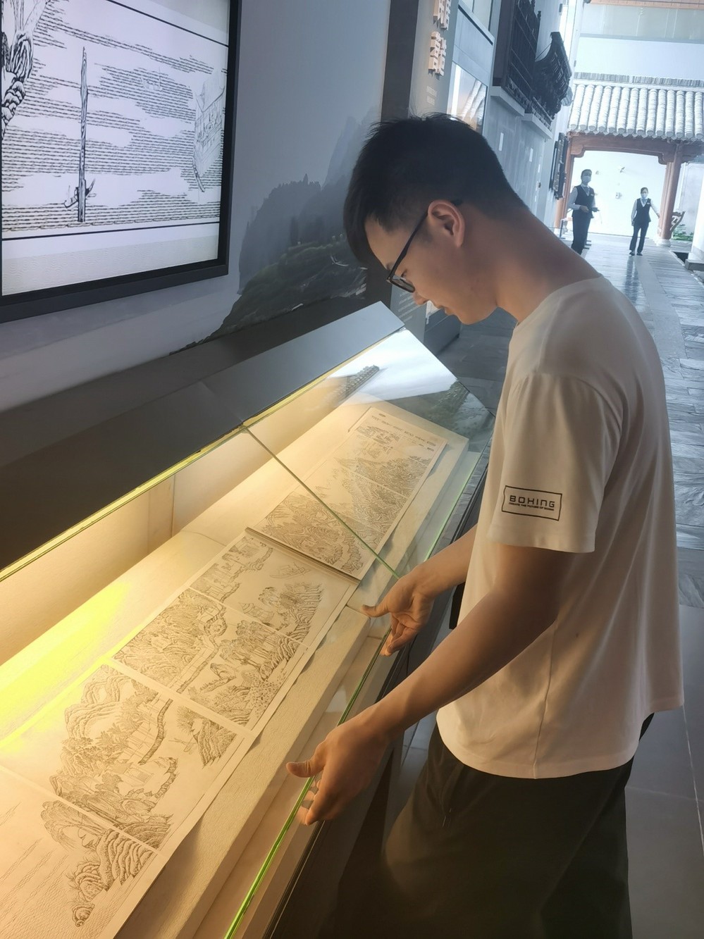 紧接着,学员们参观了“徽州古建筑”展览。徽州古建筑通过建筑构件、模型、图片等,全景式展示徽州建筑的美轮美奂,又从徽州整体搬迁古民居一幢,原状陈列,使人身临其境,尽情感受徽州古建的魅力。接着还参观了“安徽文房四宝”、“欧豪年美术馆”、“江淮撷珍”等展览。
