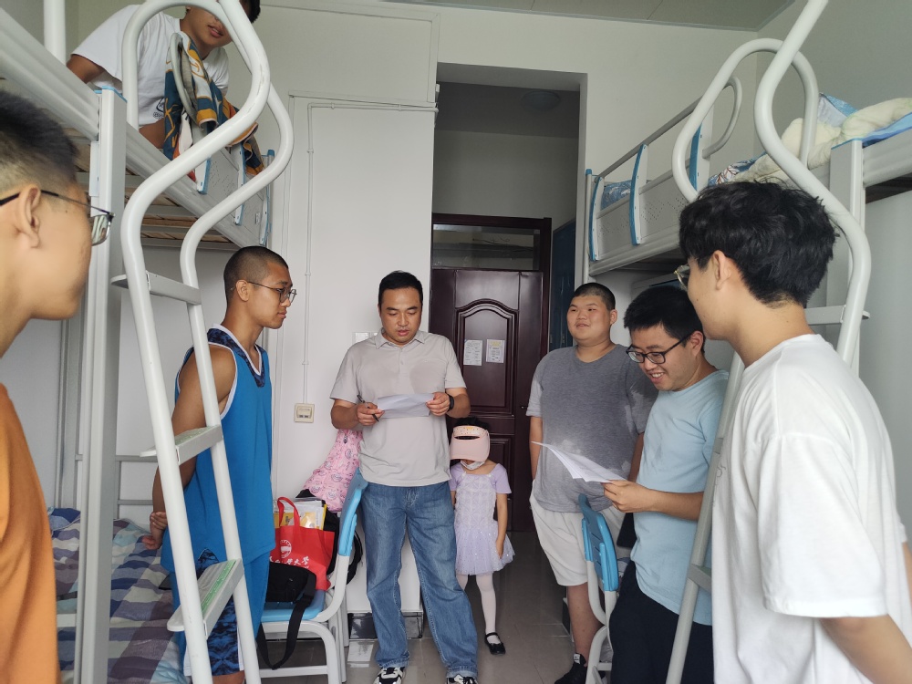 在学院2021级各班班长王英睿、罗宇佳、郭宇童等带领下,老师们来到了五号楼寝室。在新生宿舍里,老师们关切地询问了新生们的家庭状况,对学校的环境是否适应等问题,并且在大学的学习方面对新生们做出了指导。吴共庆老师对这届新生表示非常期待:“计算机学院一直有着良好的学习氛围,希望这届新生也能尽快融入这样的大环境,在这个平台上大展宏图”。路强老师对这届新生表示非常关心,询问大家是否适应寝室的集体生活,以及工大食堂的饭菜是否符合各专业中来自全国各地学子的口味。作为智能科学与技术专业的班主任,黄锦阳老师语重心长地对新生们说:“来到大学,会有各种各样的事情,但是要永远把学习放在第一位。认真对待每一科,不负国家的栽培,将来为国家做出应有的贡献”。面对老师的来访,学生们脸上洋溢着热情的笑容,很有礼貌地跟各位老师打招呼,并且承诺会不负老师的众望,认真对待生活和学习。为便于帮助新生解决问题,老师们提供了各自联系方式,为新生们提供了学习的渠道和方法建议。孙晓老师表示到“看见这届新生对大学学习生活这么期待,充满了热情,我们也就感觉到踏实了。”