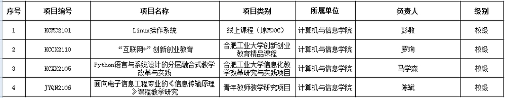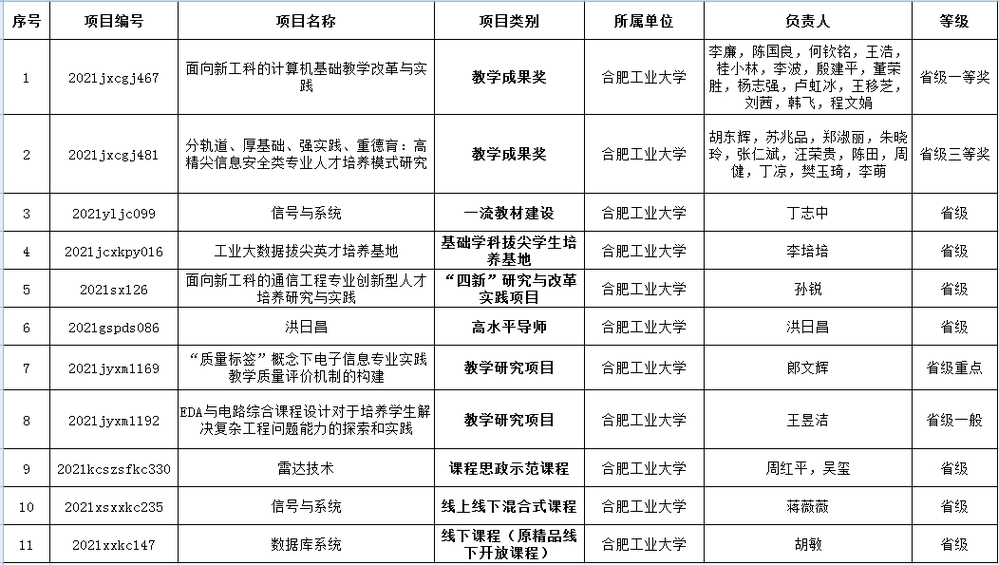 表2. 2021年度校级教学质量与教学改革工程立项名单