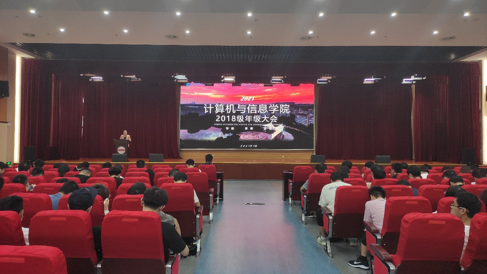 于翡翠科教楼A座二楼报告厅召开了2018级年级大会,2018级辅导员叶璟、杨炳新主持会议,快看漫画