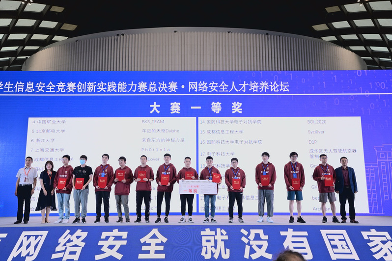 网络与信息安全研究所胡东辉老师为指导老师,郑宁军、李承益、魏于博、陈全成为团队成员组成的“C1Sec”战队在参与决赛的八十多支支战队中脱颖而出,赢得决赛一等奖。