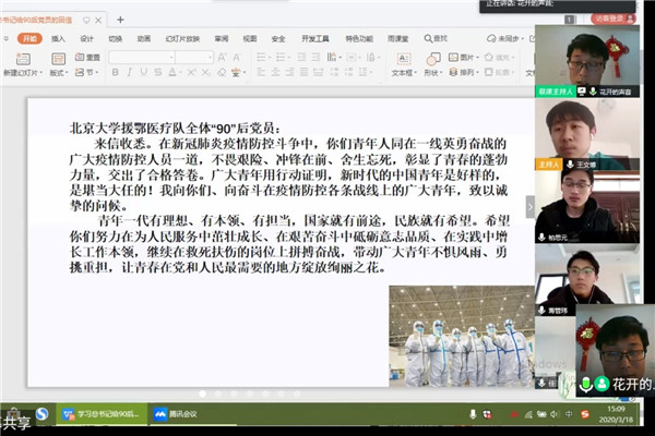 第一时间组织引领广大同学、学生骨干开展学习“习近平给北京大学援鄂医疗队全体‘90’后党员的回信”主题活动。习近平总书记的回信在快看漫画