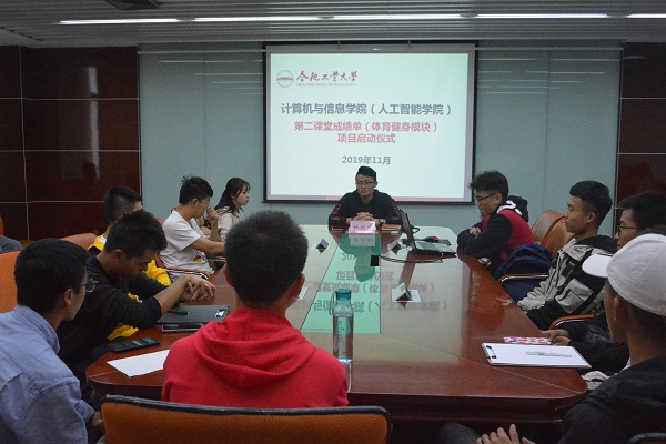 启动仪式上,2019级辅导员杜欣鹏老师以学校第二课堂成绩单实施细则为切入,从学生成长、专业技能培养等方面阐述了在学校基础上针对学院开展该项目的重要意义和必要性,并根据各班特点给出加强体育健身模块建设的指导性意见。随后,学院学生会体育竞赛部部长朱文韬为与会学生干部详细介绍了此次活动的框架安排和实施内容,并逐一进行解释与说明。与会同学积极发表相关意见,对学院第二课堂成绩单(体育健身模块)项目的开展表示赞同与支持,并表示要以班级为单位,在学院项目的基础上继续深化体育健身意义,开展适合班级氛围的各类体育健身活动,丰富同学们的课余生活。