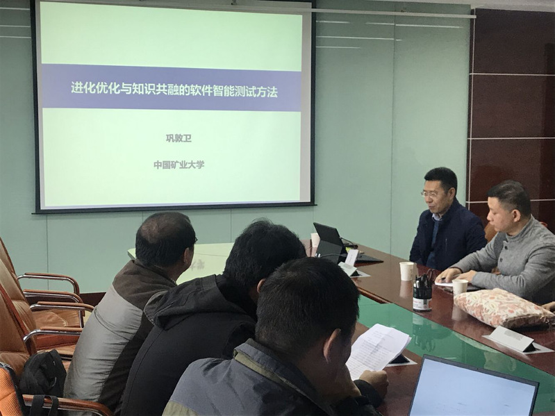 翡翠湖校区翡翠科教楼A座1104会议室,分别做了题为“进化优化与知识共融的软件智能测试方法”和“面向复杂环境时序数据变化趋势跟踪的深度学习”的学术报告。本院齐美彬教授、张仁斌副教授、唐益明副教授,管理学院何耀耀教授、以及安徽大学张兴义教授、程然副教授、王啟军副教授等相关教师、研究生、本科生到场聆听并交流学习。