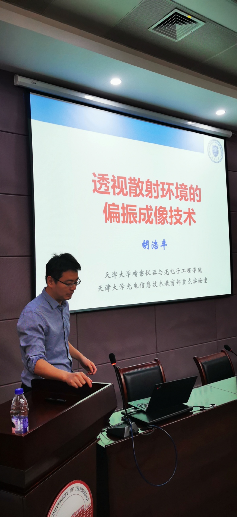 翡翠湖校区翡翠科教楼第五会议室,分别做了题为“计算成像技术与应用”和“透视散射环境的偏振成像技术”的学术报告。学院相关教师、研究生、本科生到场聆听并交流学习。