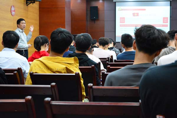 开班仪式结束后,软件学院党委副书记、副院长张炳武给全体学员上了《党的纲领、党员、党的组织》的专题党课,概述党章内容,普及党的基本知识,并且向全体学员深刻阐述了习近平新时代中国特色社会主义思想。他希望当代大学生能够认真学习中国共产党的指导思想并将其作为自己的行动指南,把自己塑造为具有高度社会责任感、过硬社会竞争力的高素质创新人才。