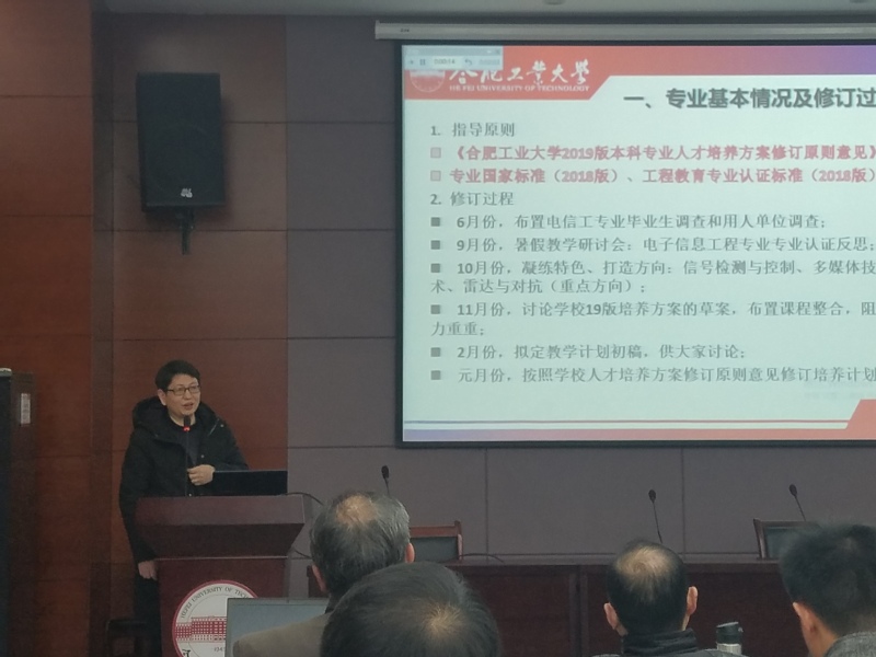 会议第二部分吴共庆、胡东辉、魏振春、孙晓、孙锐、齐美彬和郎文辉七位专业负责人分别就计算机科学与技术、信息安全、物联网工程、智能科学与技术、通信工程、电子信息工程和电子信息科学与技术七个专业的培养计划修订方案和后续建设安排进行了一系列介绍和汇报。