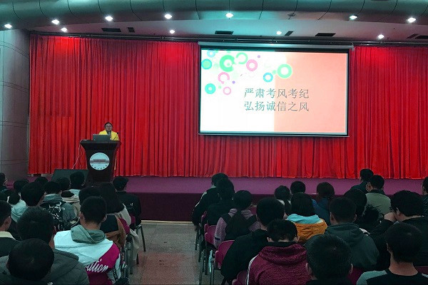 11月18日晚上6:00,学院“严肃考风考纪,弘扬诚信之风”2018级年级大会在综合楼301举行,年级辅导员和2018级全体本科生参加。