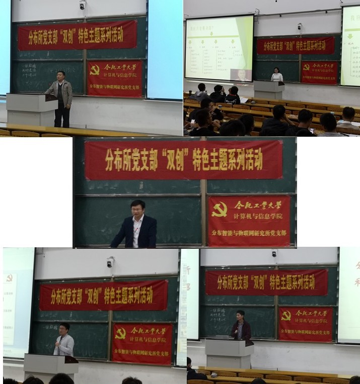 2018年10月24日下午,分布智能与物联网研究所党支部( 原“分布式控制研究所党支部”)组织党员教师赴宣城校区,面向2017和2018级物联网工程及相关专业200余名本科生开展“大学生创新创业竞赛”主题沙龙活动。此次活动不仅是对《教育部关于加快建设高水平本科教育全面提高人才培养能力的意见》文件精神的贯彻和落实,同时也是该党支部2018年初面向合肥校区计算机科学与技术专业本科生双创主题活动的延伸,旨在形成“以赛促学、竞学相长”的双创竞赛与人才培养的新格局与新模式。