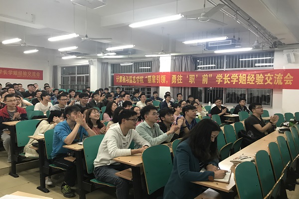 “勇往职前•研途有你”系列朋辈交流会是顺应大三广大学生需要而开展的专项主题活动,通过朋辈交流会,将这根象征着拼争一流奋力拼搏的接力棒在计算机学子中传承下去,更将就业求职升学经验传递给后辈,落实朋辈教育理念,传承学院优良学风,提升就业质量。