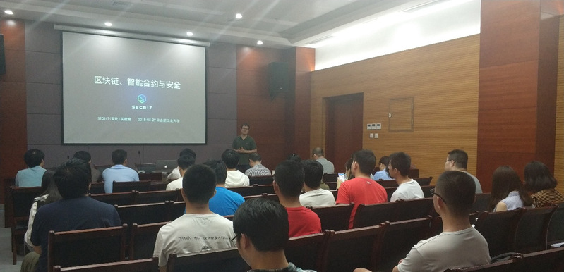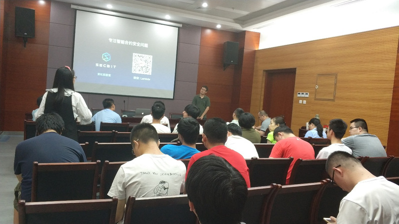 此后,郭宇 CEO为大家做了名为《区块链、智能合约与安全》的报告。郭宇老师在会上首先讲述了近几年以太坊上发生的重大智能合约漏洞事件——The DAO事件,从而引发大家对于智能合约漏洞问题的关注。接着,郭宇老师从智能合约代码入手,展示了具体案例中合约代码中的漏洞以及可能带来的安全问题,并结合他所领导的SECBIT实验室的研究成果,给出了基于代码审计、基于形式化验证的安全解决方案。