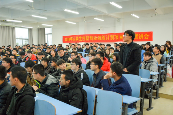 于翡翠湖校区举办2018年大学生创新创业训练计划项目申报宣讲会。学院各系所教师代表及两百余本科生出席本次宣讲会。