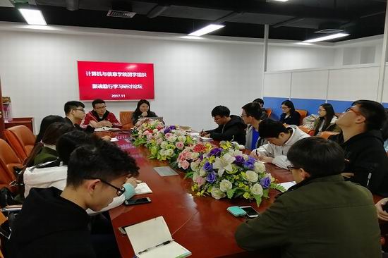 在翡翠科教楼举办“以十九大精神为指引·聚魂励行”团学干部研讨会。学院团学组织相关指导老师、主要团学干部出席会议。