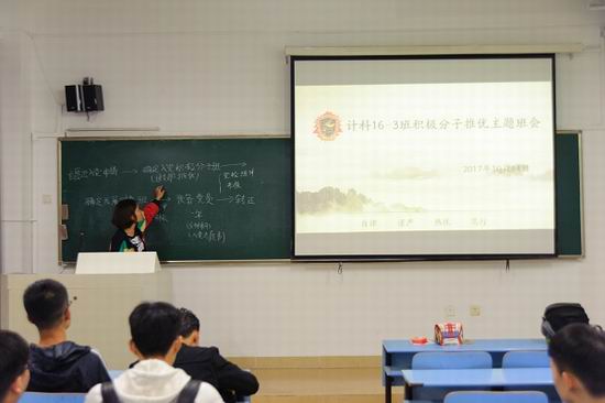 学院团委书记黄晨老师首先就《榜样》这部专题纪录片的涵义作用与各班级团支书进行交流,现今社会风气最为缺乏的就是榜样的力量,要弘扬这样的精神,深入发掘典型,需要让榜样的力量深入人心,让每个人心中都存在着一股正能量才是国家发展的原动力,之后对各班级团支部班会的开展和推优的工作进行具体安排,要求各班级团支部严格按照答辩-投票-公示的流程来进行组织。随后各班级团支部分别开展了“寻找身边榜样的力量”团员推优选举党校班积极分子班学员的主题班会。在班会上,各班候选人依次上台就自身的基本情况、思想认识以及对于如何发挥榜样的先进作用的理解进行阐述,现场也不断有同学与候选人们就班级团支部的建设进行交流,最终各班经过初期遴选、班会答辩、提问环节、现场投票及唱票、后期公示,共推选出共计41名优秀团员代表参加本次党校班积极分子班的学习。