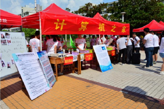 发挥党员e家作用,加强防盗防骗工作。为了防止新生上当受骗,学院在学校多处新生密集地点都安排有党员志愿者利用指引牌进行引导,使新生更快捷的寻找到学院迎新工作大本营。