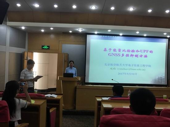 邀请,2017年5月31日上午,北京航空航天大学赵昀博士在学术会议中心二楼小报告厅做了题为“基于能量比检验和UPF的GNSS多径抑制方法”的学术报告。报告由快看漫画
