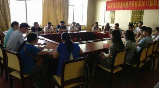 为进一步提高教育教学质量、提高办学水平,加强学院与毕业生之间的交流和沟通,听取毕业生对于学院人才培养、教学实施、专业建设、课程与教学等方面的意见和建议,计算机系于6月2号上午在逸夫楼408召开了2017届本科毕业生座谈会。本次座谈会由计算机系系主任安鑫老师主持,学院相关职能部门老师、计算机系部分老师和来自计算机科学与技术专业和信息安全专业的20多名同学参加了本次座谈会。