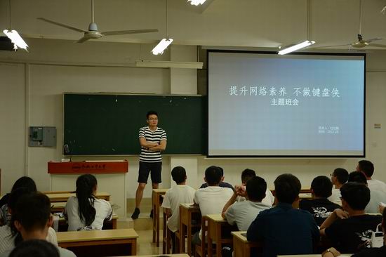 同时为结合团中央部署的一学一做教育实践活动,以文明修身为抓手切实提升大学生的网络文明素养,学院年级辅导员以提升网络素养为主题在各班召开了主题班会,会上辅导员老师由目前网络上较为流行的“键盘侠”这一现象引出目前大学生文明上网,舆论导向方面可能存在的问题,同时将当前的热点问题与同学们进行交流,由学生自己说出对于目前网络上各种现象的看法,引导学生担负起正确的社会舆论和网络舆论导向的责任和义务,加强了学生对于网络素养的重视。