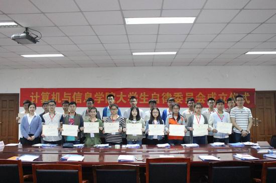 大学生自律委员会主任何旭东宣读大学生自律委员会章程。最后,学院辅导员老师为大学生自律委员会全体成员颁发了聘书。