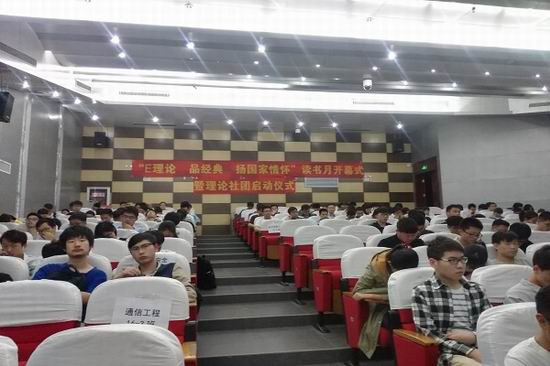 在翡翠湖校区建筑艺术馆报告厅举办了“E理论 品经典 扬家国情怀”读书月开幕式暨思e学社理论社团启动仪式。来自马克思主义学院的潘莉老师、该院相关负责人以及各团支部学生代表等出席了本次活动。