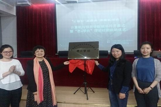 之后全体嘉宾为思e学社进行揭牌仪式;潘莉老师则以主题讲座的形式为大家讲解了马克思主义的伟大之处,以《共产党宣言》为例,用幽默简朴的语言从如何读一本书、为何读这本书、这是一本什么样的书三个问题引入,分别从“求真、实践、感悟”三个方面诠释了如何能够在经典阅读中提升现实洞察力,现场交流不断,同学们掌声热烈。