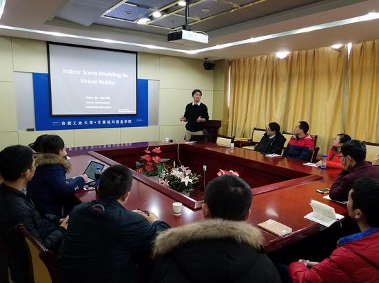 邀请,南京大学计算机科学与技术系、软件新技术国家重点实验室郭延文教授在逸夫楼408会议室做了题为“虚拟现实中的室内场景几何和材质建模”的学术报告。报告会由快看漫画