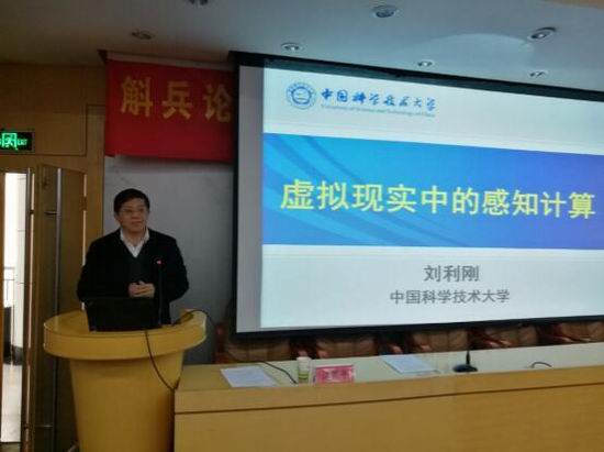 刘利刚教授做了题为《虚拟现实中的感知计算》的特邀报告。虚拟现实是人的感知的延伸,是一种可以创建和体验虚拟世界的计算机仿真系统,涉及到大量的计算模拟仿真等。报告介绍了中国科技大学在虚拟现实感知计算方面的研究进展。