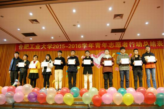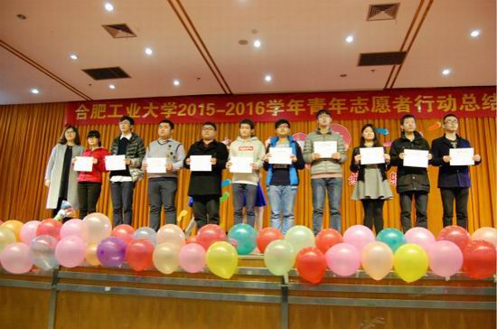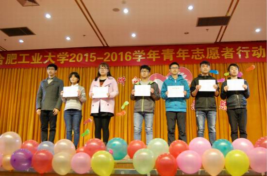 先锋志愿中心被评为“青年志愿者优秀组织”,我们的“爱心义卖,先锋敬老”的项目被评为“青年志愿者优秀项目”,我们中心2015-2016学年的主任李炳辉被评为“青年志愿者优秀组织者”,我们中心下的助敬先锋队被评为“青年志愿者优秀团队”,我们中心的董钊月和章雪琦被评为“青年志愿者先进个人”。