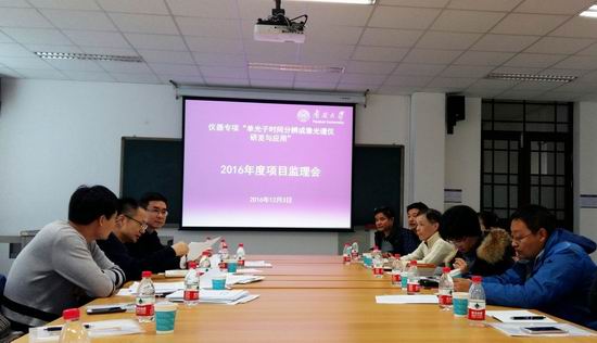 国家重大科学仪器设备开发专项“单光子时间分辨成像光谱仪研发与应用”2016年度监理会,于2016年12月3日在南开大学召开。监理会由项目监理组组长周维虎教授主持。项目的研发任务单位、产业化示范单位和应用任务单位分别汇报了各自任务的执行情况。监理组在听取汇报后,和各任务单位讨论了项目 的整体进展情况,给出了监理意见。