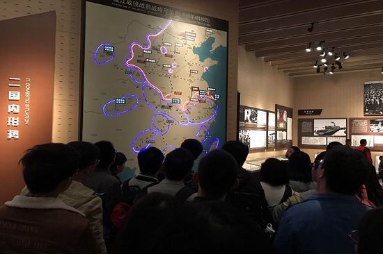 在渡江战役纪念馆,伴随着生动详尽的解说,全体党员先后参观了纪念馆内现存国内最大的室内艺术群雕“胜利之师”、反映惊心动魄的渡江场景的半景画馆、一千余件珍贵的革命文物等。渡江战役纪念馆以实物、图片、文字和声、光、电等现代化手段,生动展现了百万雄师过大江的壮阔画卷。缅怀革命前辈的丰功伟绩的同时,学生党员们更加深入地了解我党我军光荣历史,陶冶了道德情操,加强了党性修养。