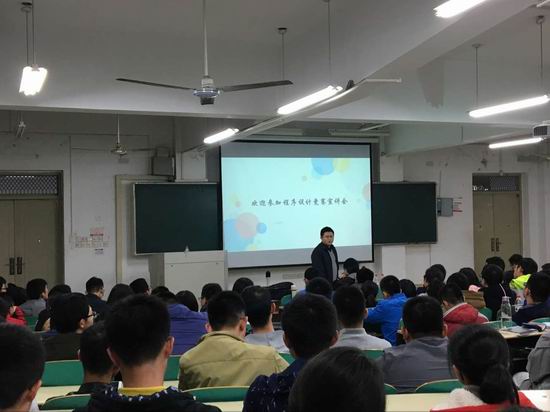 会上,主持人简单介绍了近年来学校参加竞赛的概况并宣布宣讲会正式开始。随后,徐本柱老师发表讲话,指出编程能力是学院内每一位学生应该熟练掌握的能力,而ICPC则是提升编程能力的途径之一。之后介绍了ICPC的背景与历史,快看漫画