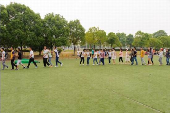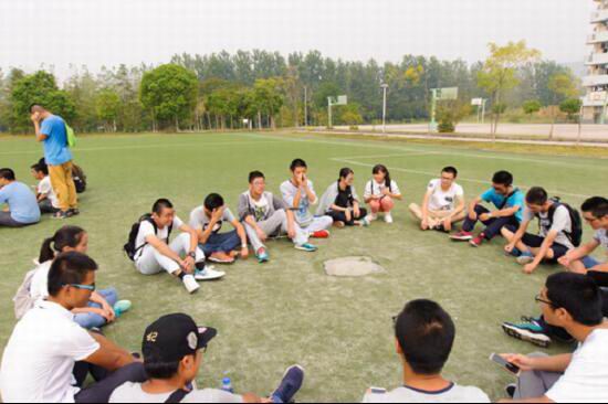 组织的2016年团学干事团体心理辅导活动在翡翠湖校区西操场成功开展,该院全体团学组织近100名干事参与了此次活动。