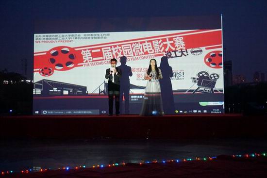 承办的第二届校园微电影大赛决赛在翡翠湖校区东风广场举行。安徽省微电影研究会会长李涛、优酷土豆网签约导演戴常伟,校团委、党委学工部、学院相关负责人出席了此次活动。