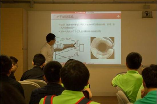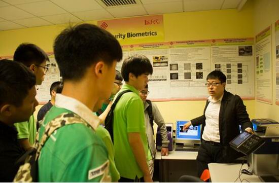 在香港理工大学,首先大家参观了生物特征识别实验室,由曲晓峰博士为大家讲解了生物特征识别领域的一些研究工作和成果,他为同学们展示了掌纹识别、虹膜识别、人脸识别等比指纹识别更为精确且快速的生物识别技术,同时也展示了舌诊、脉诊、气诊等生物特征识别技术在医学中的应用实例和研究成果。随后,安排了与香港理工大学几位博士研究生进行经验分享交流会,徐军、李锦兴、任东伟、李牧等博士分别针对自己博士期间的研究方向和研究内容进行了介绍,并和大家分享了他们的科研感悟和学习心得。最后,借鉴Panel的形式,大家与这些博士进行了互动交流,各位同学积极提问,各位博士们针对大家的各种问题进行了详细的解答,并给出了很多有价值的建议。整个过程在香港理工大学进行交流访问的贾伟老师的主持下进行。