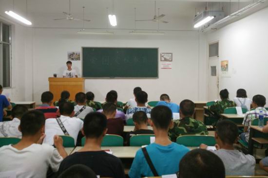 现代校歌——《弦歌一路高声唱》。当晚,学生们聚集在教学楼,随着音乐放声而歌,情绪高亢,斗志昂扬,现场气氛极为热烈。随后,大家还以连队齐唱的方式展现教学成果,学生们都兴致勃勃,情绪达到了顶峰。齐的不只是歌声,也是人心;唱的不只是乐曲,也是激情。