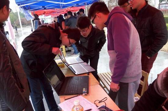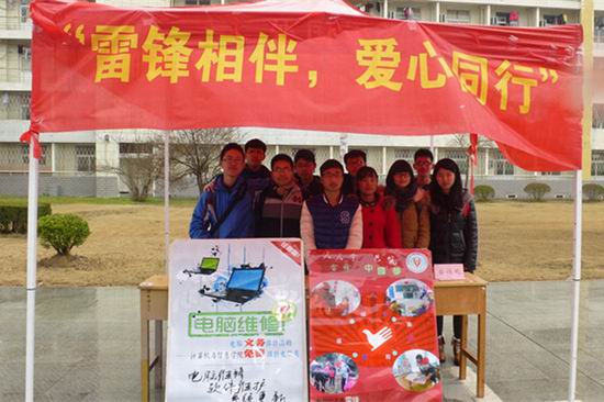 3月5日中午,该院的志愿者们在翡翠湖校区一、三食堂广场开展了“学雷锋——电脑义务维修”活动。本次义务维修活动服务项目主要包括办公软件更新及安装、电脑除尘、系统维护、疑难详询等,在场志愿者还结合专业所学知识,与前来咨询的广大同学分享计算机编程语言的学习经验和常用办公软件的使用技巧。
