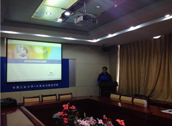 2015年1月15日上午9:00,应老人福祉科技实验室主任安宁教授的邀请,德国海德堡大学董震博士生作了题为“用静态程序分析自动探测软件中的配置问题”的报告。报告会在逸夫楼408会议室举行,报告会由计算机软件与理论研究所所长邵堃副教授主持。