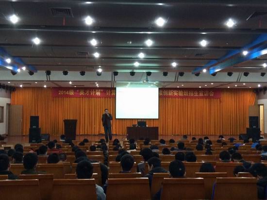 宣讲会上,路主任首先以自问自答“本硕连读创新实验班招生十问十答”的开讲模式,简明扼要的从本硕连读的目的,学院组织结构,研究生指标和推免规则,学制和教学计划,本科阶段培养的特点,硕士阶段的学科归属和研究方向等方面进行了介绍,将同学们对于实验班招生计划的关注点和疑惑进行了针对性解答。为避免学生错失报名机会和盲目扎堆报名,路主任着重详细介绍了实验班报名、退出和诚信机制等有关问题。希望同学们秉着“非诚勿扰”的原则,坚持从一而终,不得头脑发热,浪费宝贵的名额。最后,路主任鼓励大家抓住机遇,认真思考规划自己的人生,相信同学们能够正确做出适合自己的选择,为自己的未来增添更多精彩。会后,同学们踊跃向老师提出自己的问题,显示出对实验班的浓厚兴趣。