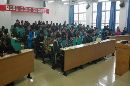 团委副书记黄晨老师和2014级辅导员宋燕老师主讲,2014级全体班级心理委员和寝室心理联络员参加了本次活动。