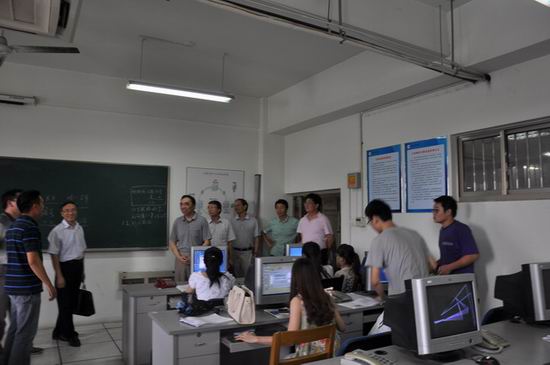 7月9日上午10半,江苏理工学院党委书记王建华在郑利平副院长陪同下参观快看漫画 教育部安全关键技术研究中心、学院专业实验室和创新基地,陪同的还有计算机工程学院叶飞跃院长和电气工程学院罗印升院长。