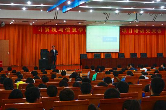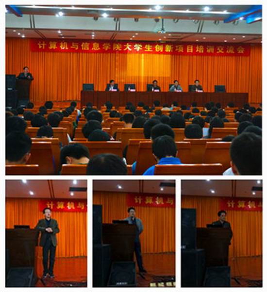 翡翠湖校区图书馆报告厅顺利举行。学院党委副书记、副院长何庆领,计算机系主任路强、电子信息工程系主任齐美彬、通信工程系主任丁志中以及大学生创新项目优秀学长团出席了此次培训交流会,2012级和2013级800余人参加了此次培训交流会,会议由电子创新基地负责人杨兴明副教授主持。