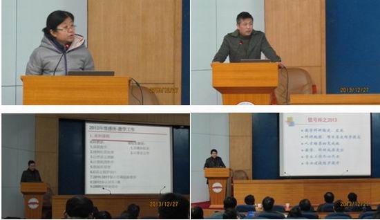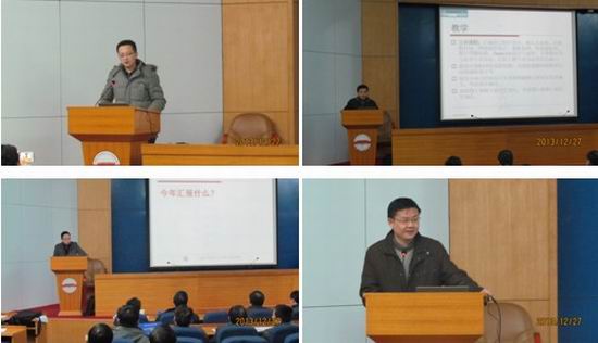 在学术会议中心一楼报告厅召开了2013年度领导班子和个人及基层单位述职测评会。全体教职员工出席会议,学院党委书记蒋建国主持会议。